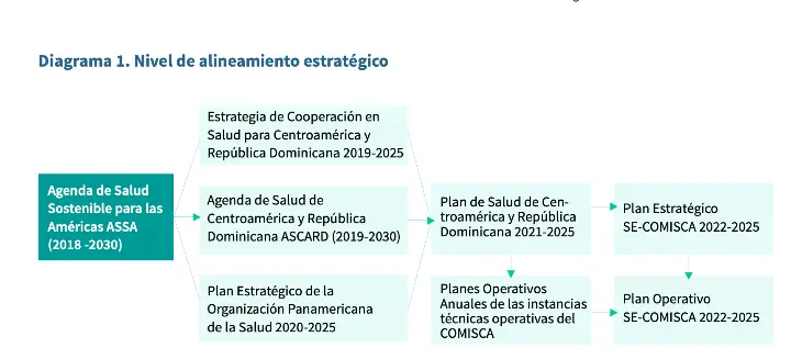 Es en este contexto, que se da la construcción (ver diagrama 1), primero, de una Agenda de Salud de Centroamérica y República Dominicana 2019-2030 (ASCARD), luego de un Plan de Salud de Centroamérica y República Dominicana 2021-2025 (PSCARD) y ahora de la Política Regional de Salud de Centroamérica y República Dominicana 2023-2030 (PRSS), que se consolidan como el marco de acción regional que integra y prioriza las necesidades e iniciativas sectoriales.