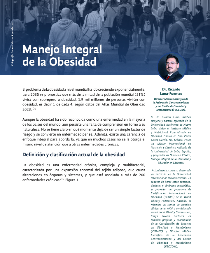 Dr. Ricardo Luna-Fuentes, Director Médico Científico de la Federación Centroamericana y del Caribe de Obesidad y Metabolismo (FECCOM), Instituto de Nutrición de Centro América y Panamá (INCAP)